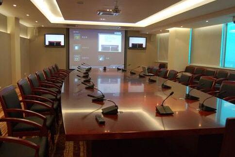 派出所监控中心/会议室配置电视墙与音响设备,实现对各前端监控场所的集中监控。监控中心同时配置有摄像头、麦克风,均接到矩阵,可以与上级控制中心实现实时互动会话。